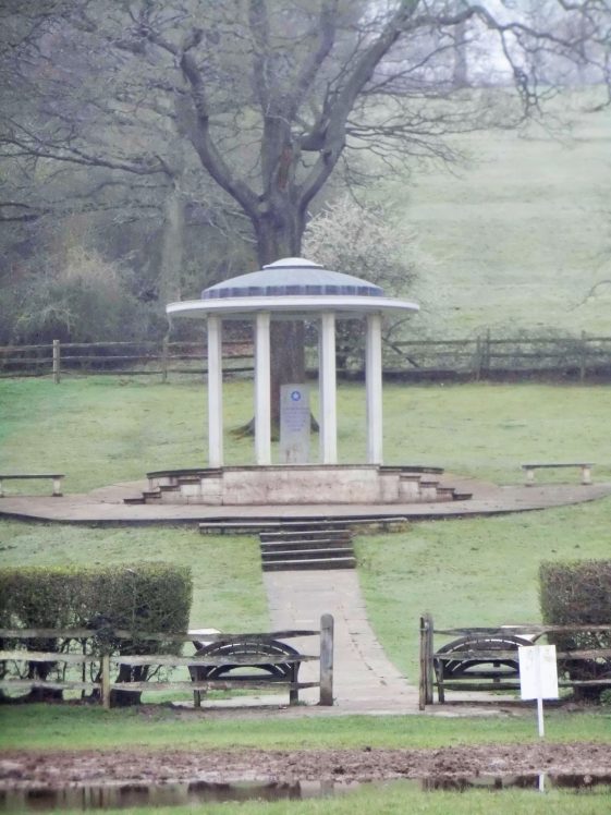 The flood ringed Magna Carta Memorial.